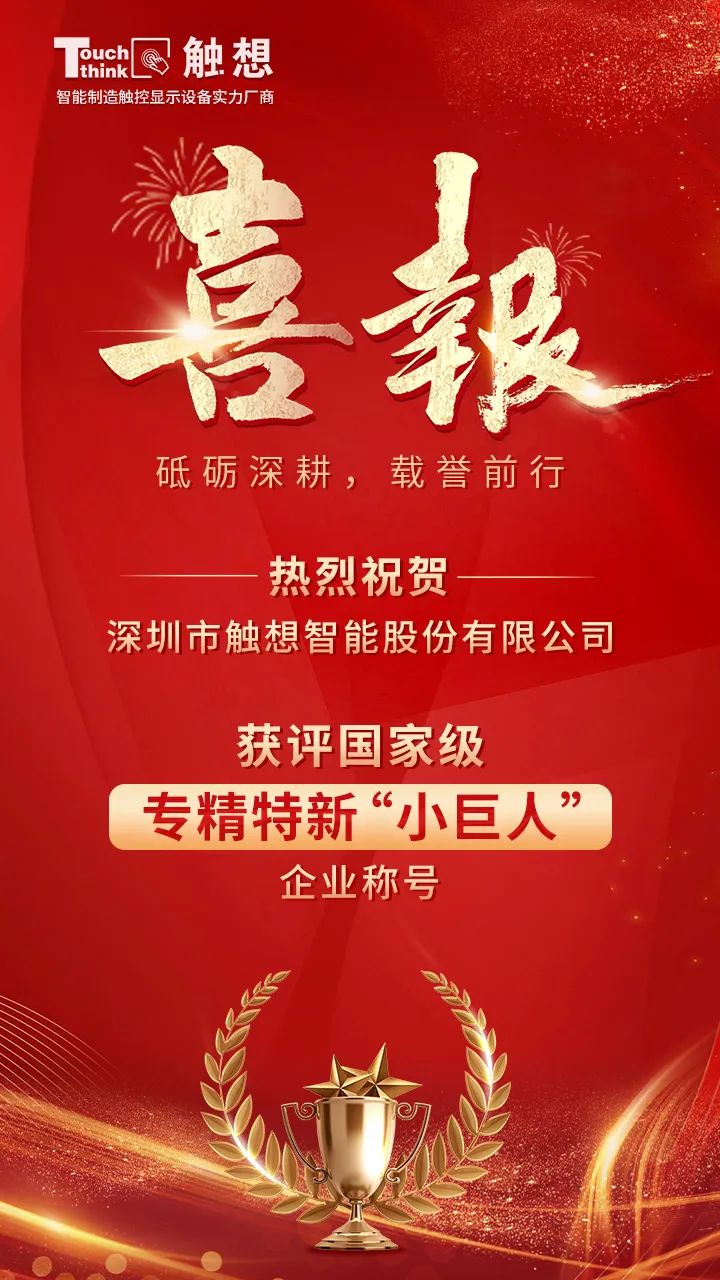 7月14日,深圳市中小企業(yè)服務(wù)局發(fā)布了《關(guān)于深圳市第五批專精特新“小巨人”企業(yè)和第二批專精特新“小巨人”復(fù)核通過企業(yè)名單的公示》通知,觸想智能成功入選,正式榮列國家級(jí)專精特新“小巨人”企業(yè)梯隊(duì)。